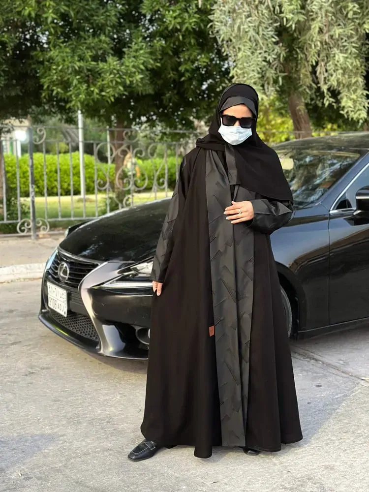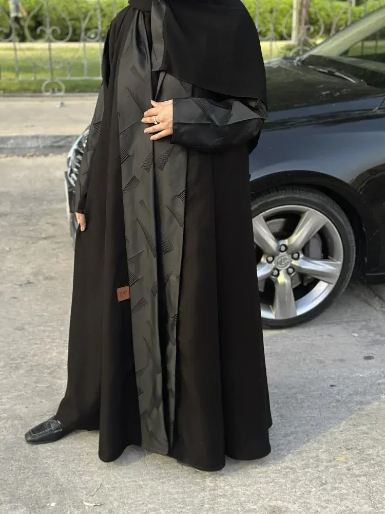 عباية الرقي الأسود– مزيج الكريب والجاكار الفاخر