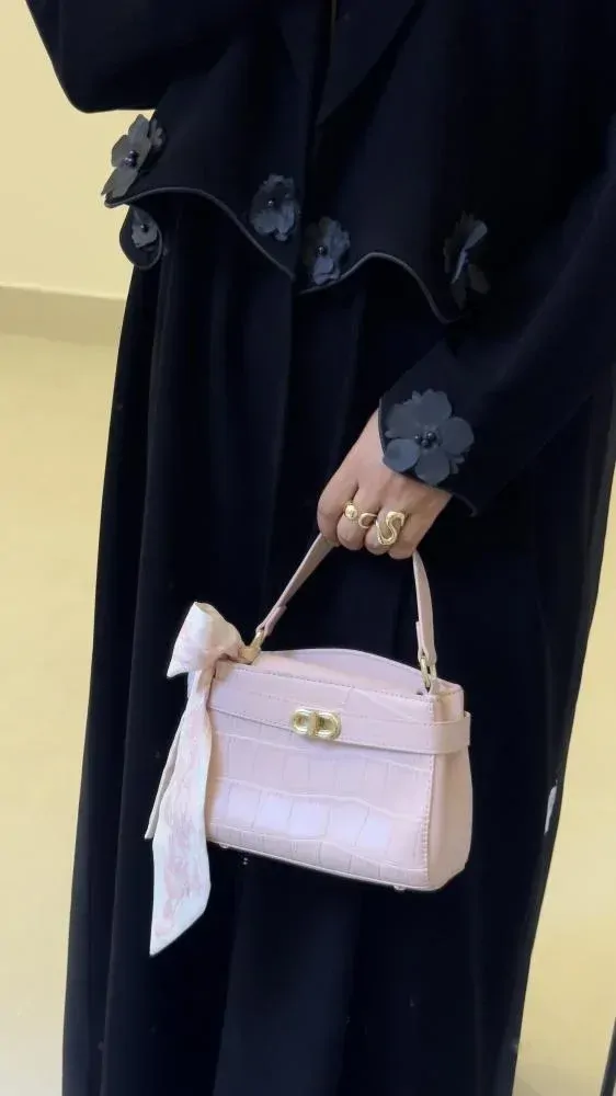 العباية السوداء المورّدة – فخامة الأسود ولمسة أنوثة